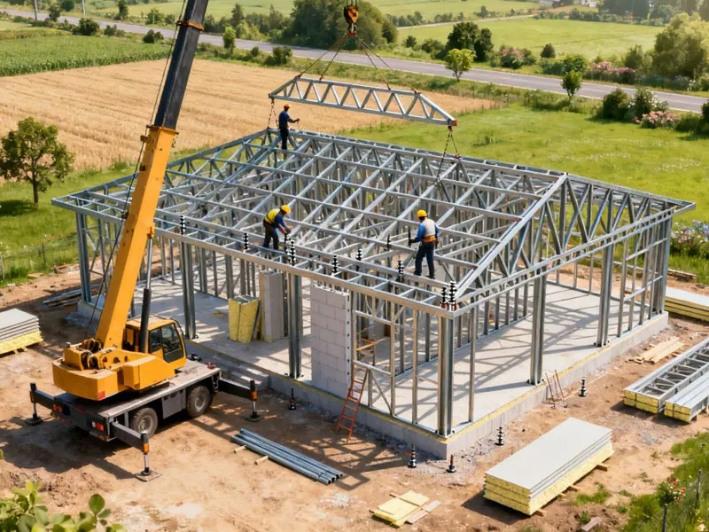 • Budynek domu o zielonej konstrukcji stalowejBudynek domu o zielonej konstrukcji stalowej