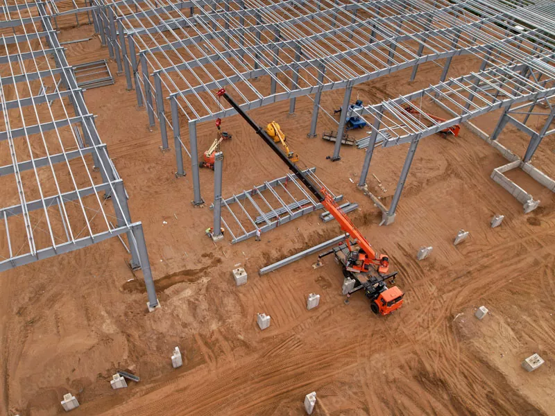 Stalowe elementy, w tym wiązki, kolumny, aparaty ortodontyczne i kratownicy dachowe, są prefabrykowane w ustawieniu fabrycznym. Zastosowana jest wysokiej jakości stal, a komponenty są wytwarzane do precyzyjnych specyfikacji, aby zapewnić, że pasują do siebie dokładnie i bezpiecznie podczas instalacji. To kontrolowane środowisko pozwala na rygorystyczne miary kontroli jakości, zapewniając trwałość i niezawodność komponentów.