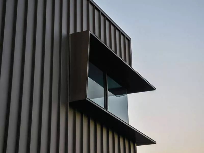Po zakończeniu ramy stalowej instalowany jest system dachowy, zwykle składający się z izolowanych metalowych paneli lub membranowych materiałów jednopłisowych. Ściany zewnętrzne, jeśli włączone do projektu, są również instalowane przy użyciu metalowych paneli, cegły lub innych materiałów okładzinowych.
